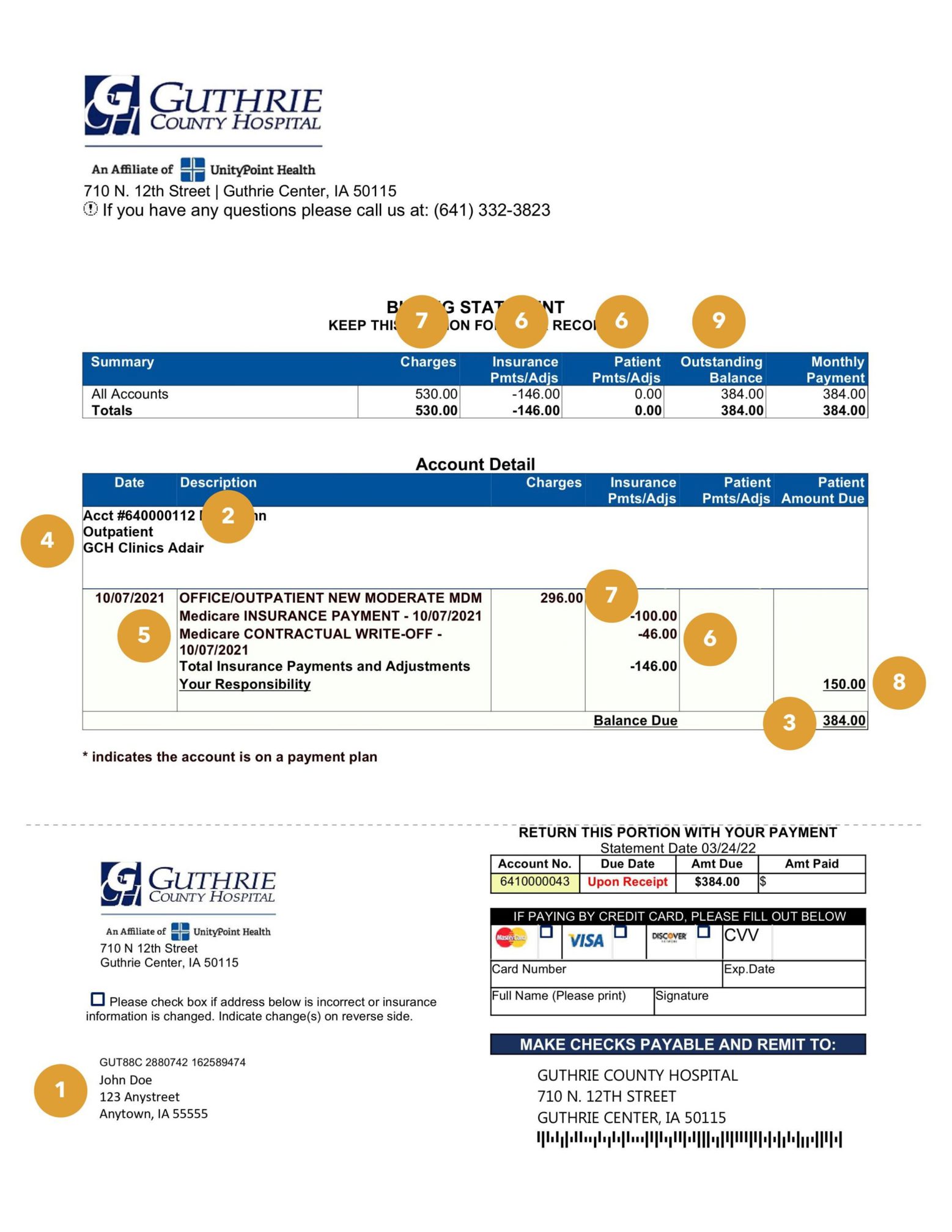- Current Amount Due: This is your total balance for services received at Guthrie County Hospital.