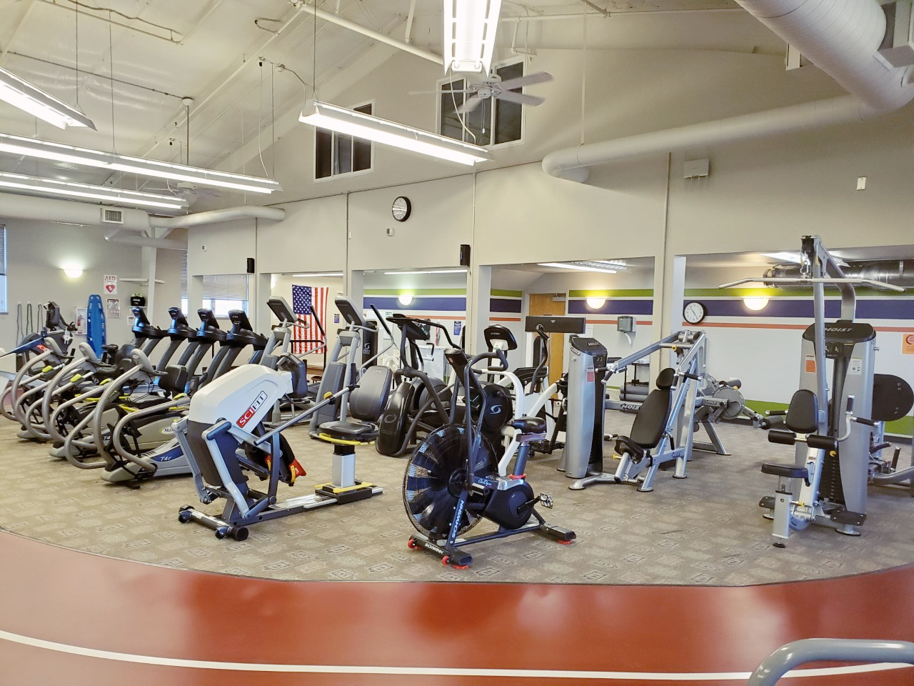 - Smith machine, free weights & stretching area