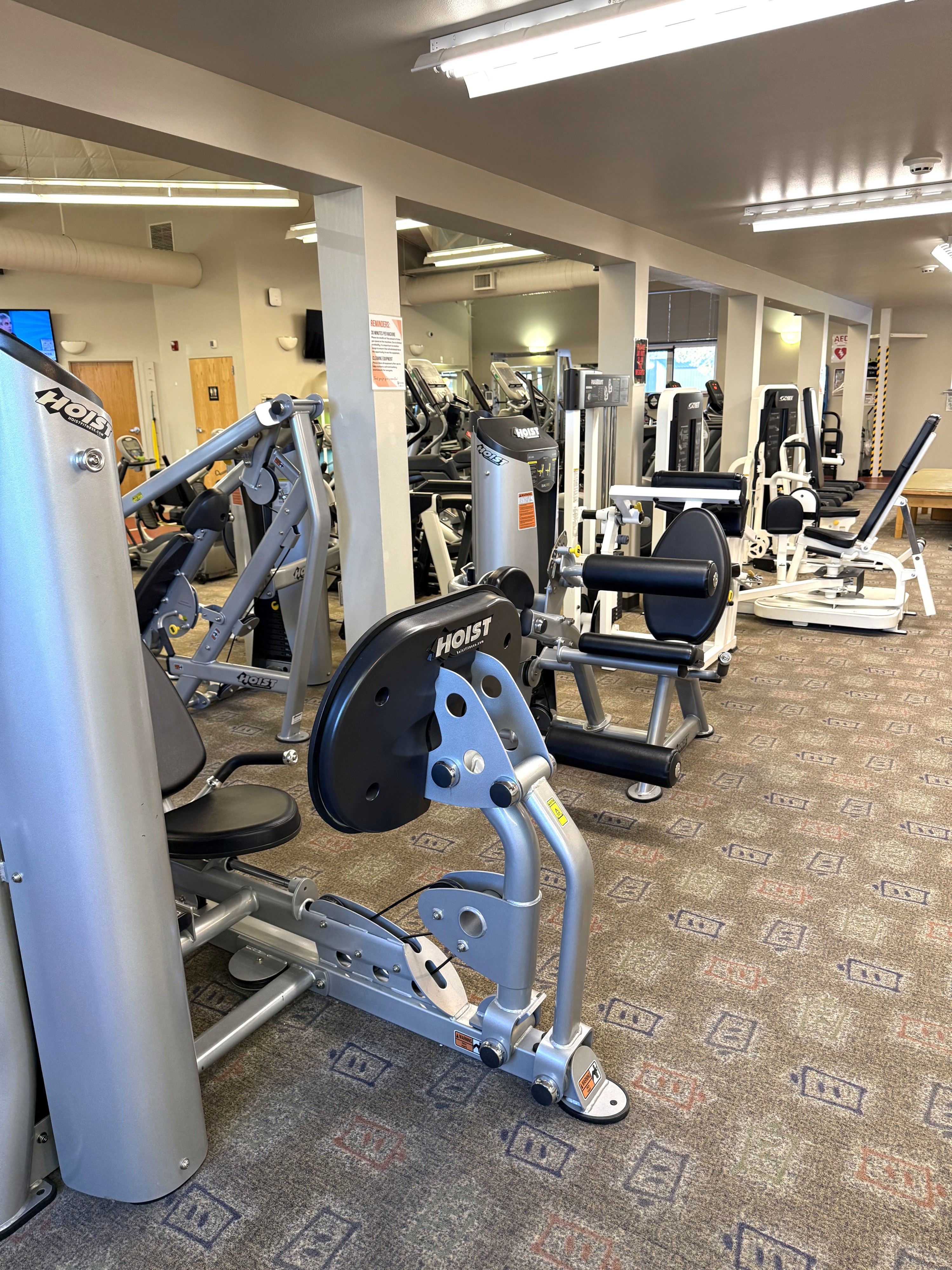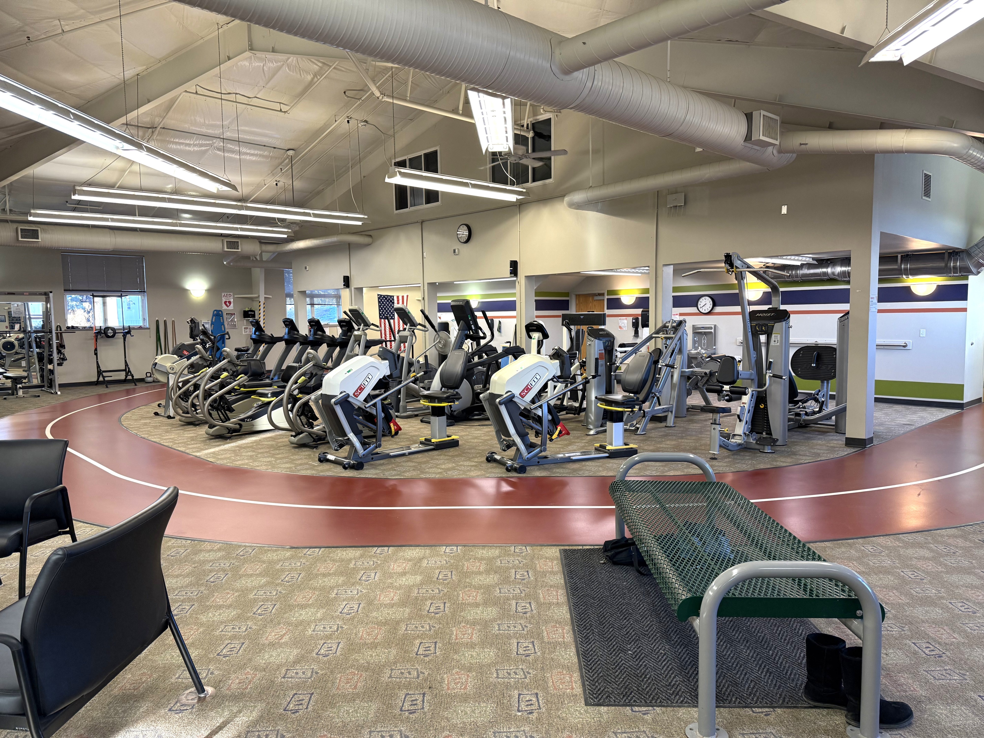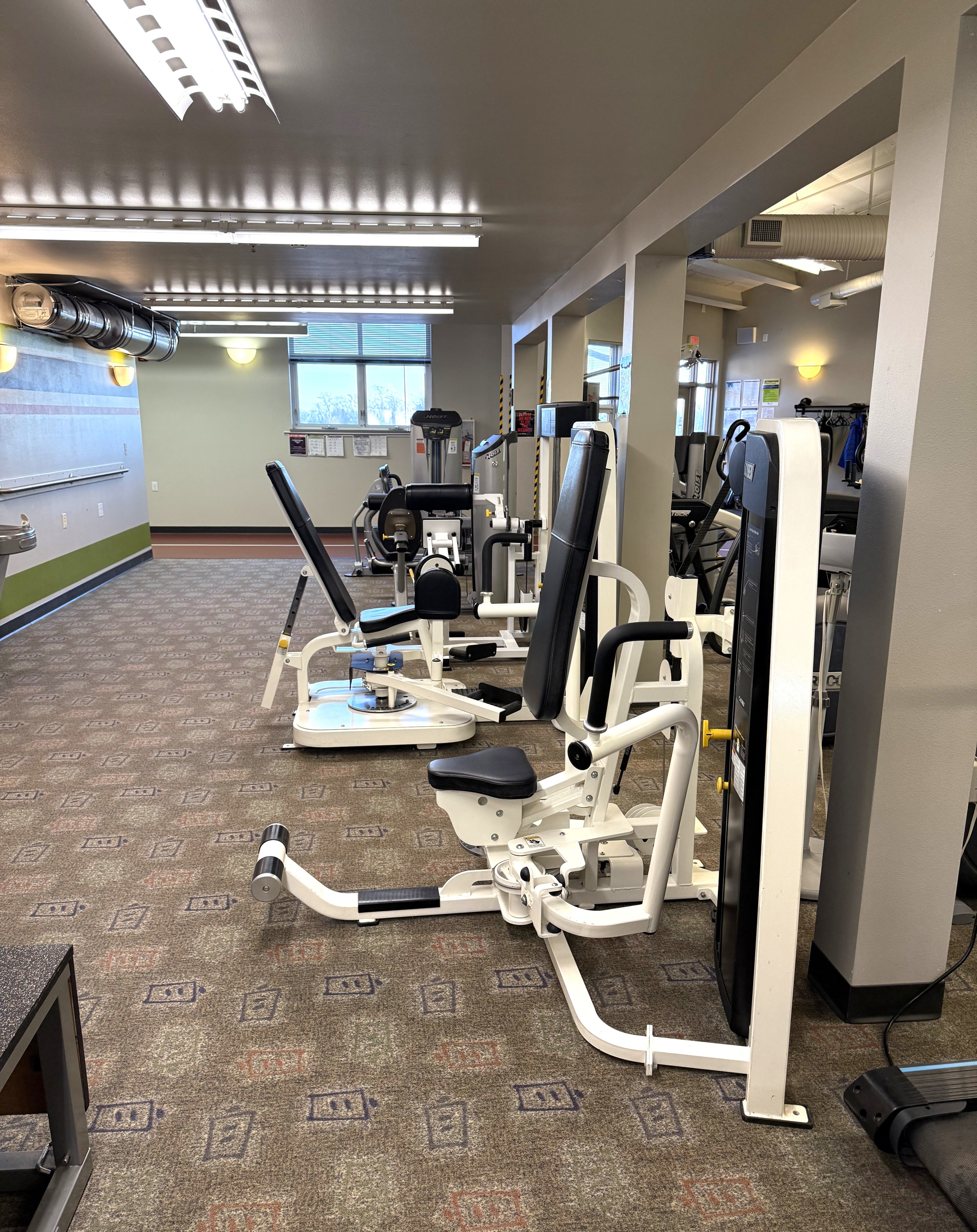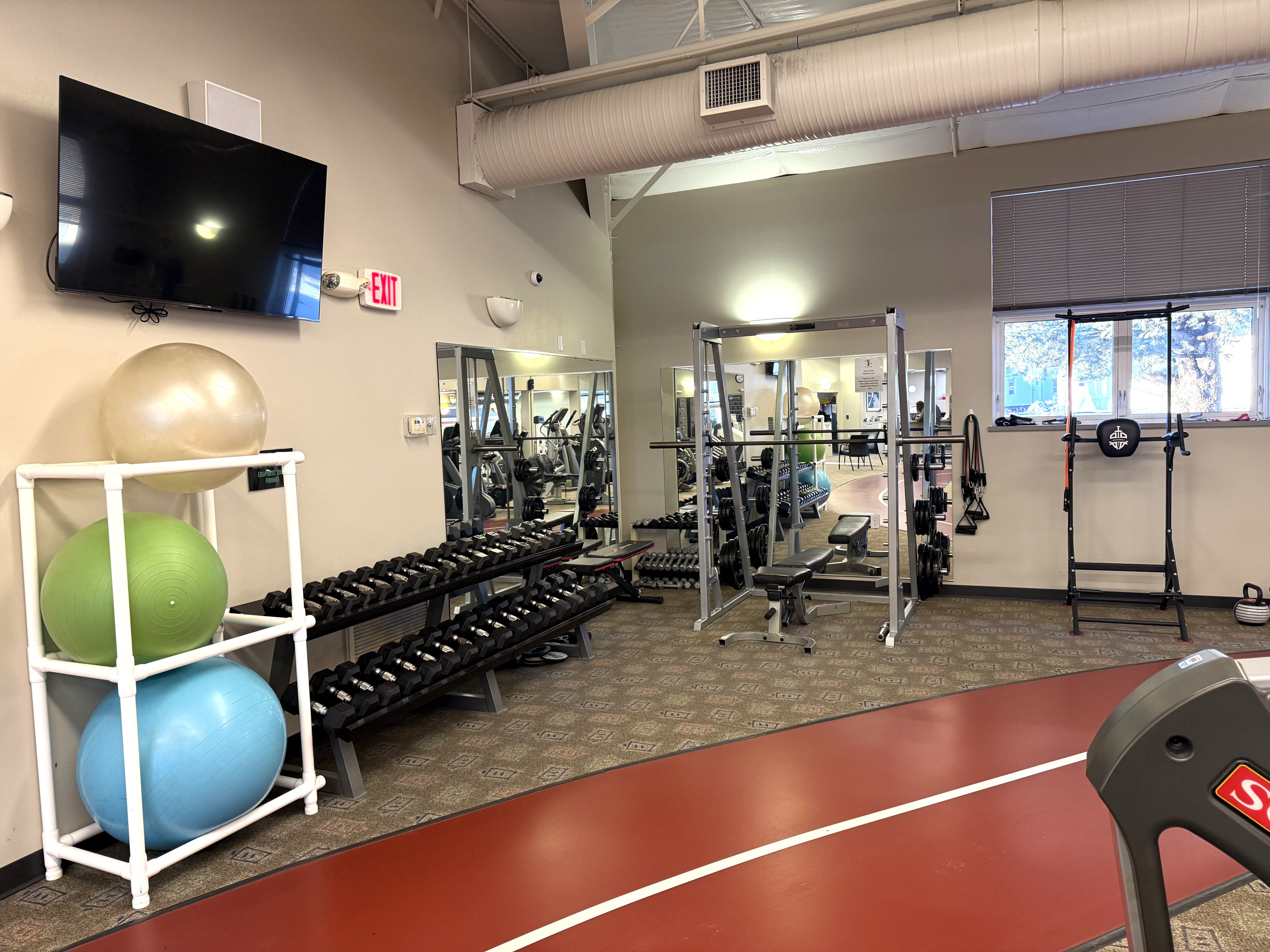 - Smith machine, free weights & stretching area